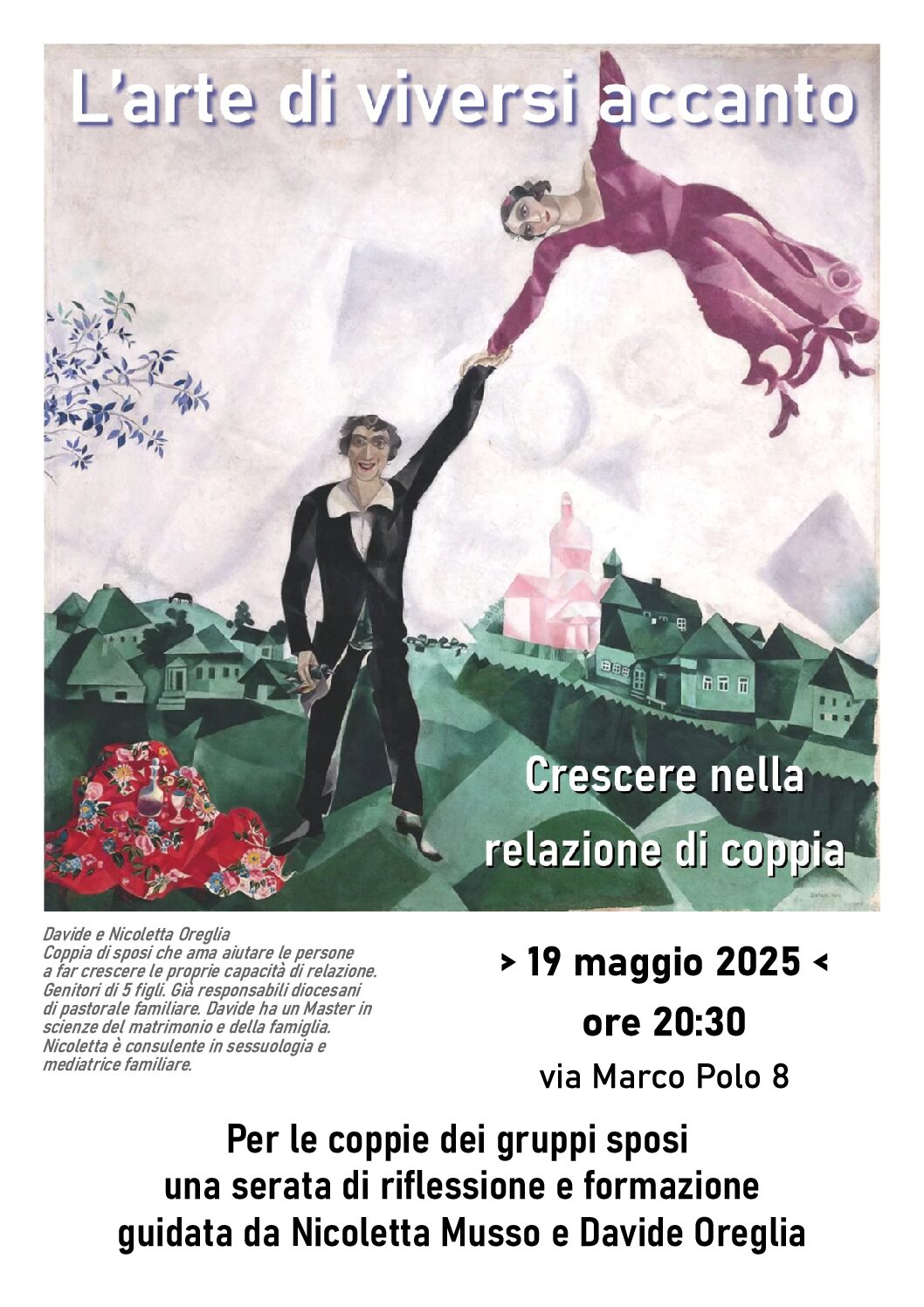 Domenica 10 novembre alle ore 16 a Torino presso la parrocchia di Santa Maria Goretti VIa Actis 10 per coppie, fidanzati e famiglie. Cosa ci aiuta a diventare maestri nella difficile arte del ricalcolo, in coppia, in famiglia? Insieme ci interrogheremo su questo aspetto. Saremo presenti tutti e due, ci vediamo a Torino domenica
