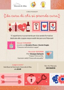 La cura di chi si prende cura. Ad Alba un percorso pensato per chi si prende cura delle coppie che si preparano a ricevere il Sacramento delle Nozze. Il tema scelto è quello della intimità e della sessualità. Si tratta di due serate, una con Davide e Nicoletta Oreglia, l’altra con il prof. Spimpolo